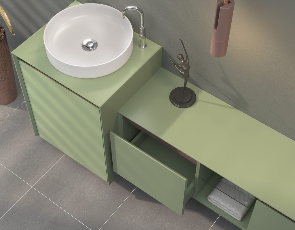 Dayanıklılık: Nemli ortamlara uyumlu, paslanmaz aksesuar ve kaliteli menteşe sistemleri.